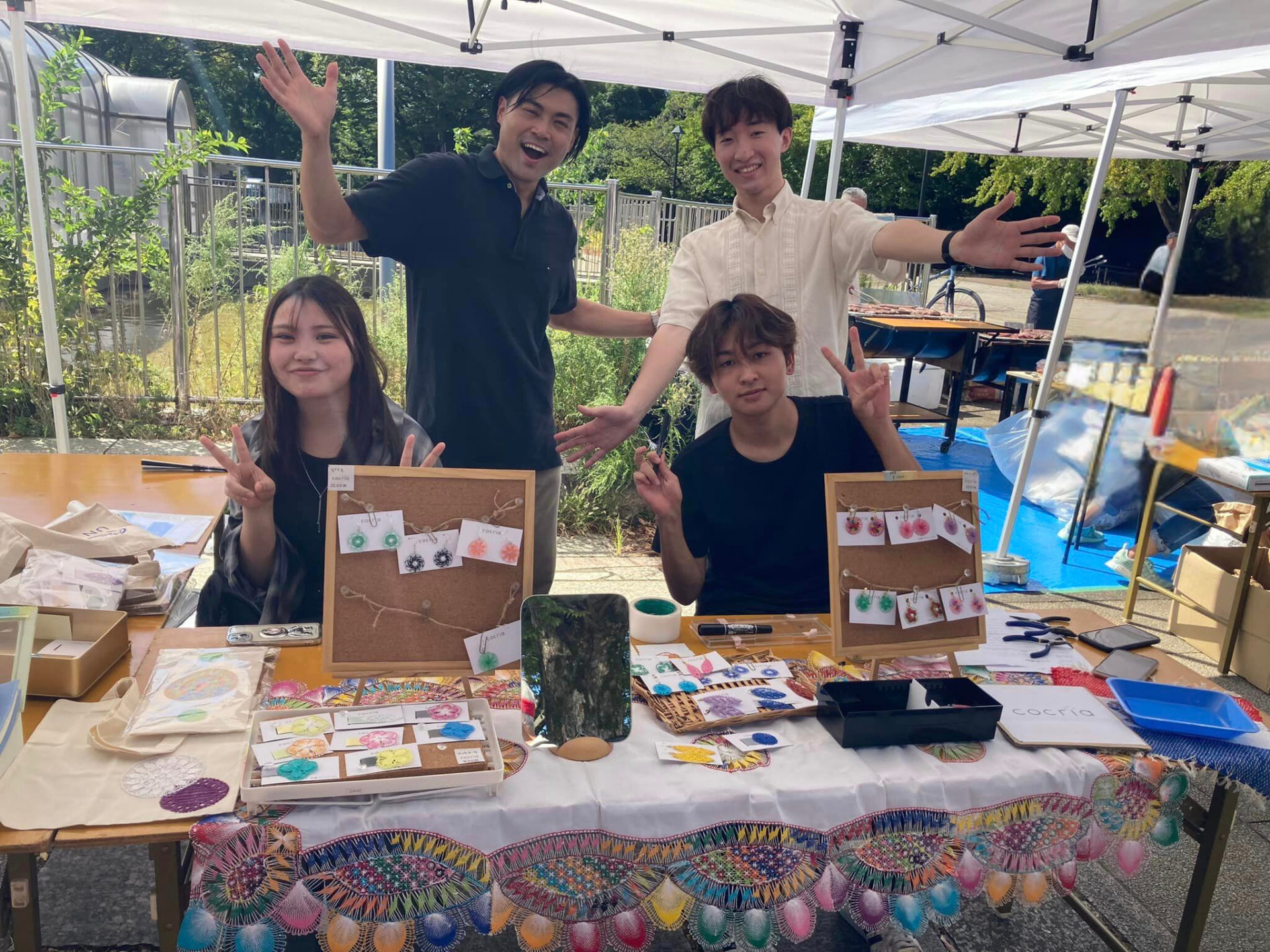 パラグアイフェスティバルに出展しました! イベント 2024.09.16 9月15日(日)光が丘公園でのパラグアイフェスティバルにNPO法人ミタイ・ミタクニャイ基金&学生部のCOCRIA(コクリア)が参加しました パラグアイの伝統工芸品のニャンドウティのピアスやイヤリング、ブックマークなど、可愛い小物を販売しました。 舞台ではアルパやダンスの紹介がありました。 立ち止まって興味深そうに見ていってくださる方が沢山いて、学生さんたちと訪れた方がパラグアイの話に盛り上がる場面もありました。売り上げはパラグアイの作り手さん他に還元されます。 残暑厳しい中でしたが、フェスティバルは大盛況でした。ご来場下さった皆様方に感謝申し上げます!