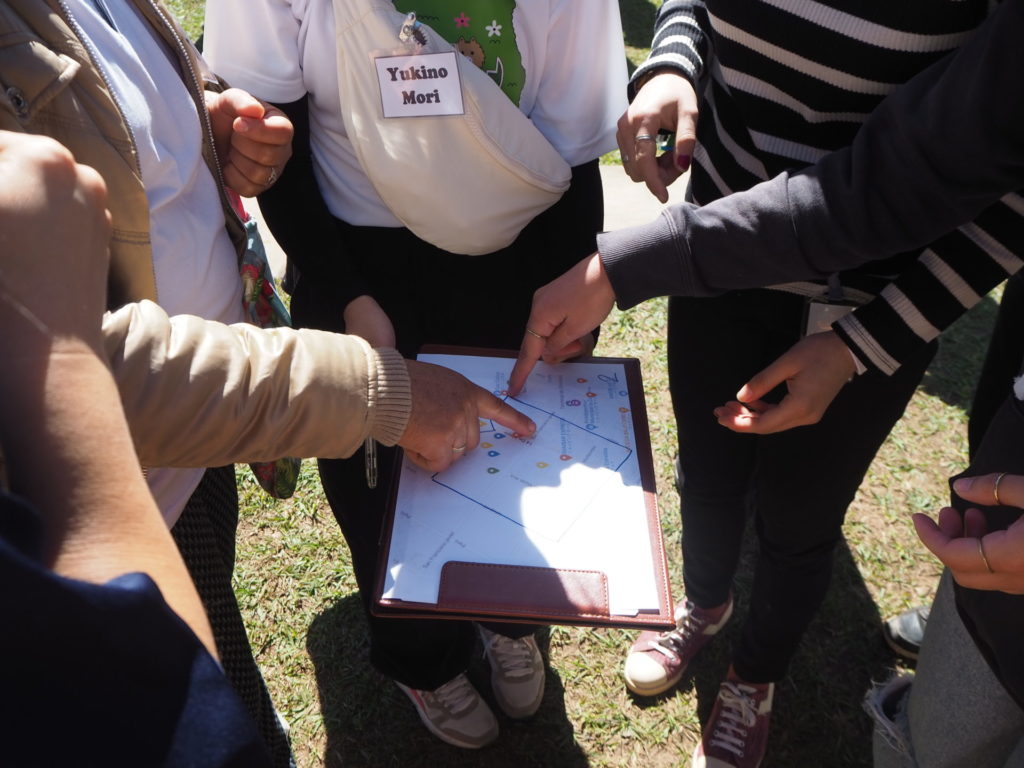 翌日、地図に記録した地点と撮影した写真を使って、オリジナル観光マップを作成するアクティビティを行いました。女性たちと学生が混じりながらグループごとに作成した地図を発表しました。